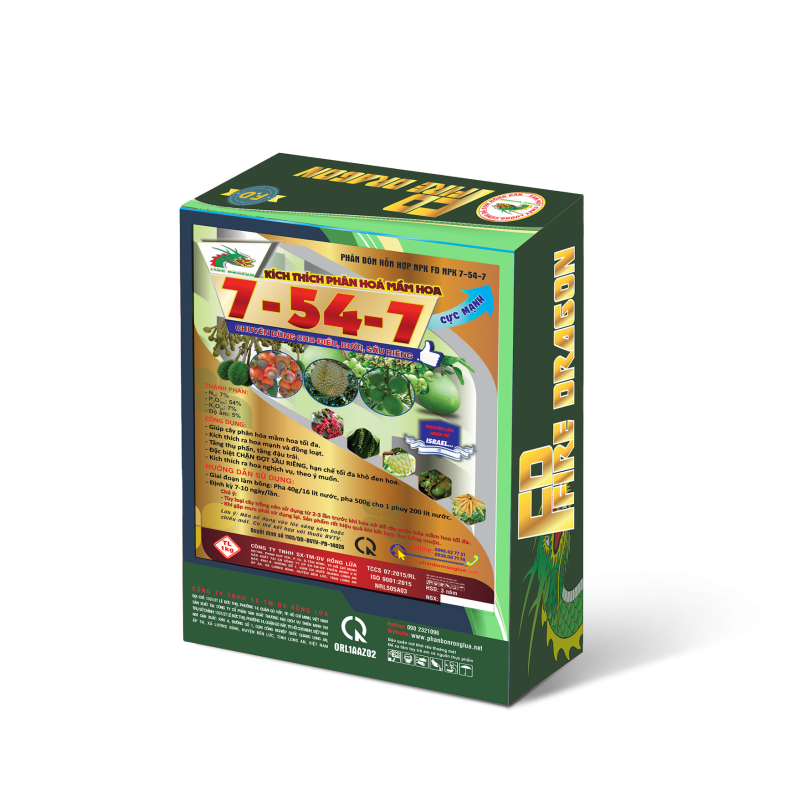 Sản phẩm 7-54-7 sở hữu hàm lượng Lân hữu hiệu cực cao (54%), là trợ thủ đắc lực giúp nhà vườn làm chủ quá trình ra hoa, đặc biệt hiệu quả trên cây Sầu riêng: