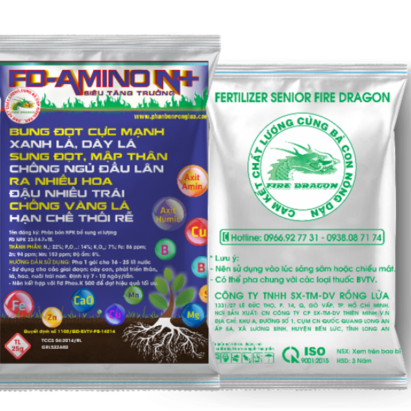 FD-Amino Ga3: Phức hợp Amino Chelate siêu hấp thu giúp bung đọt đồng loạt, xanh dày lá, nuôi bông mập khỏe và phục hồi lực cây toàn diện.