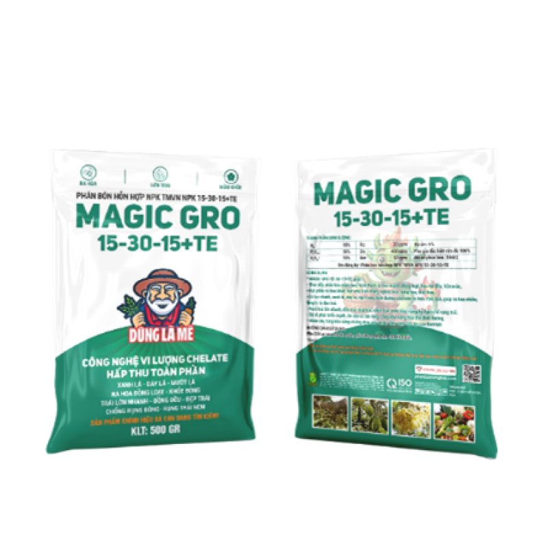 MAGIC GRO 15-30-15+TE – SIÊU TẠO MẦM, KÍCH HOA & NUÔI TRÁI (Gói 500g): Công thức "Lân cao" chuyên biệt cho giai đoạn chuyển hóa.