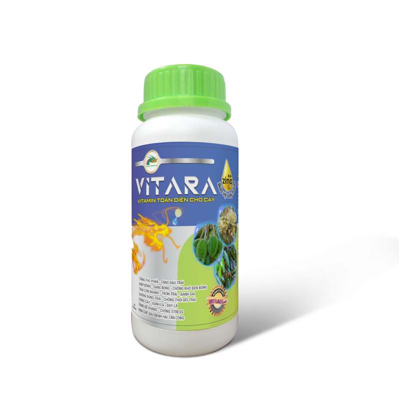 - Dinh dưỡng cân đối – Hấp thu tuyệt đối: VITARA là sự kết hợp tinh tế giữa Canxi hữu cơ cao cấp, Acid Fulvic và hệ trung vi lượng thiết yếu (Fe, Zn, Mn, B, Cu, Mo). Với hệ phụ gia đặc biệt, sản phẩm giúp cây hấp thu dưỡng chất tức thì, tạo nền tảng cho sự phát triển toàn diện.