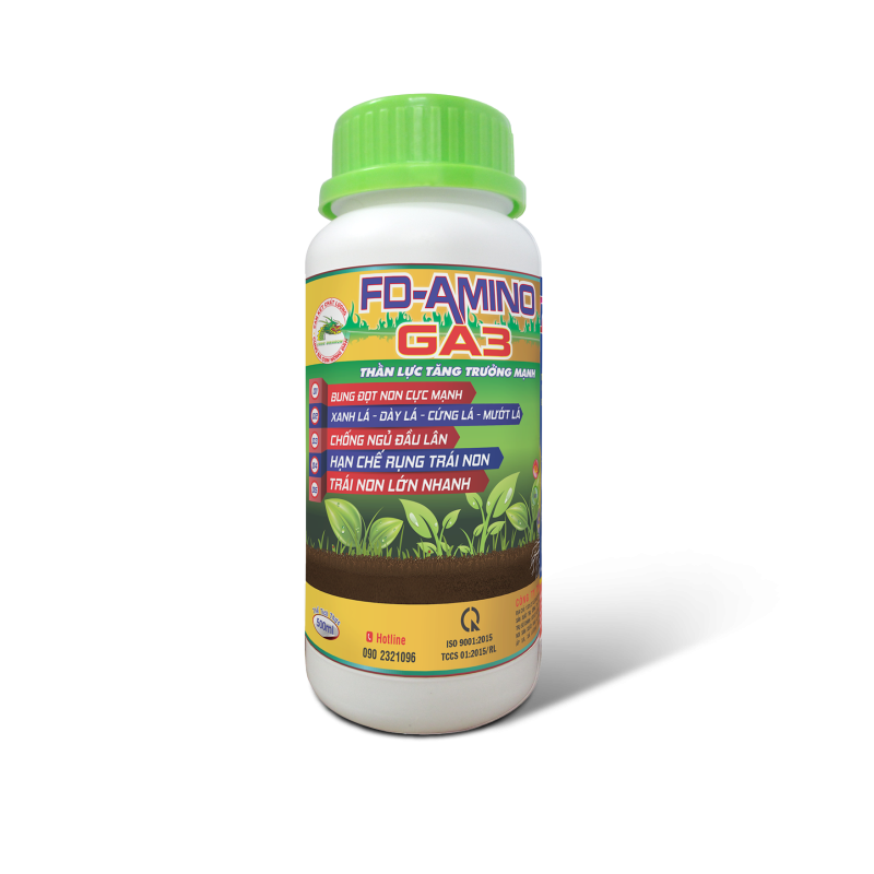 FD-Amino Ga3: Phức hợp Amino Chelate siêu hấp thu giúp bung đọt đồng loạt, xanh dày lá, nuôi bông mập khỏe và phục hồi lực cây toàn diện.